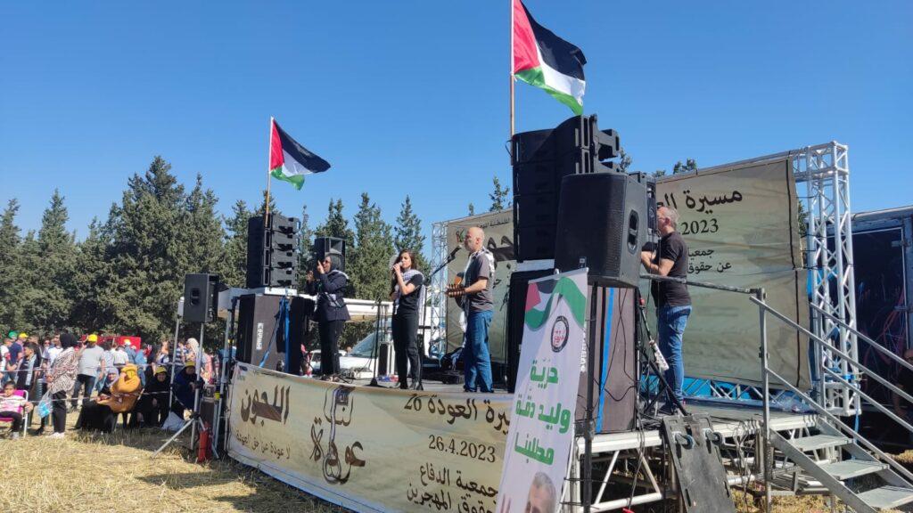 فيما أكد عضو إدارة لجنة الدفاع عن حقوق المهجرين كامل برغوثي أن حق العودة لا رجوع ولا تنازل عنه. وإنه مع هذا العدد الكبير من الشباب الحاضر في المسيرة سيبقى حيًا مهما بقي شعبنا حي.
