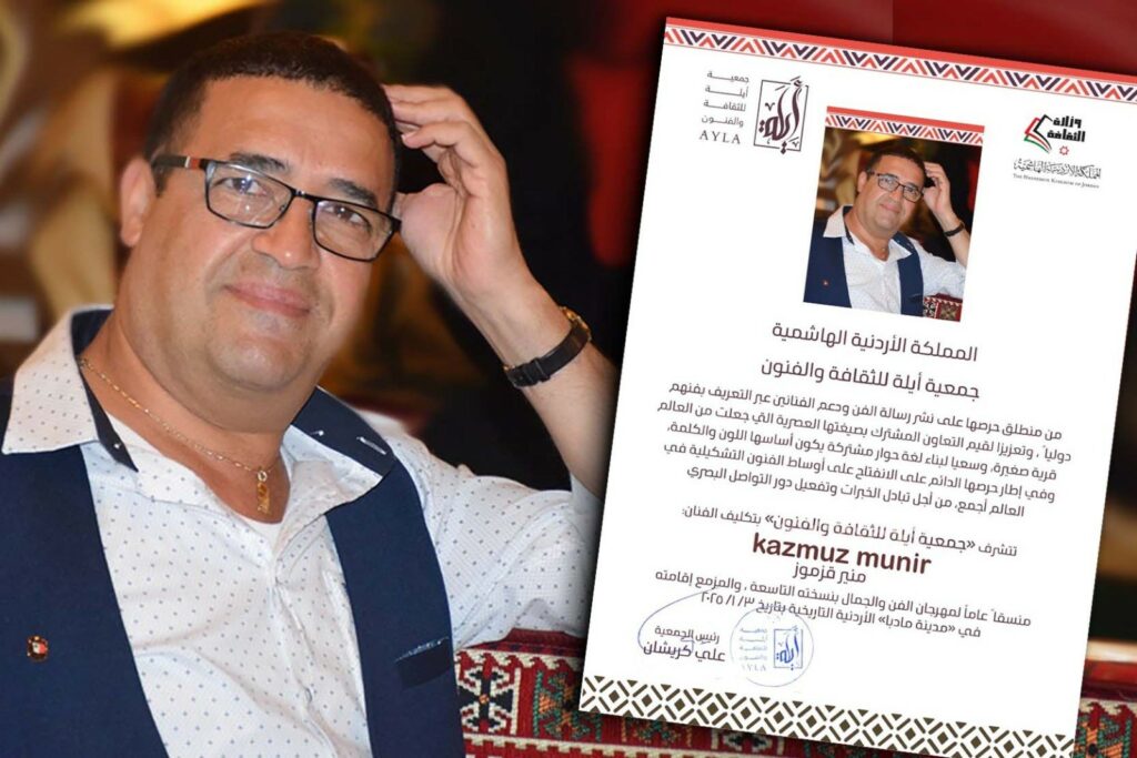 علم مراسلنا انه تم مؤخرا تكليف الفنان التشكيلي العكي “منير قزموز” منسقا عاما لمهرجان الفن والجمال الدولي بنسخته التاسعة والمزمع اقامته في مدينة “مادبا” بالاردن بتاريخ 3/1/2025.