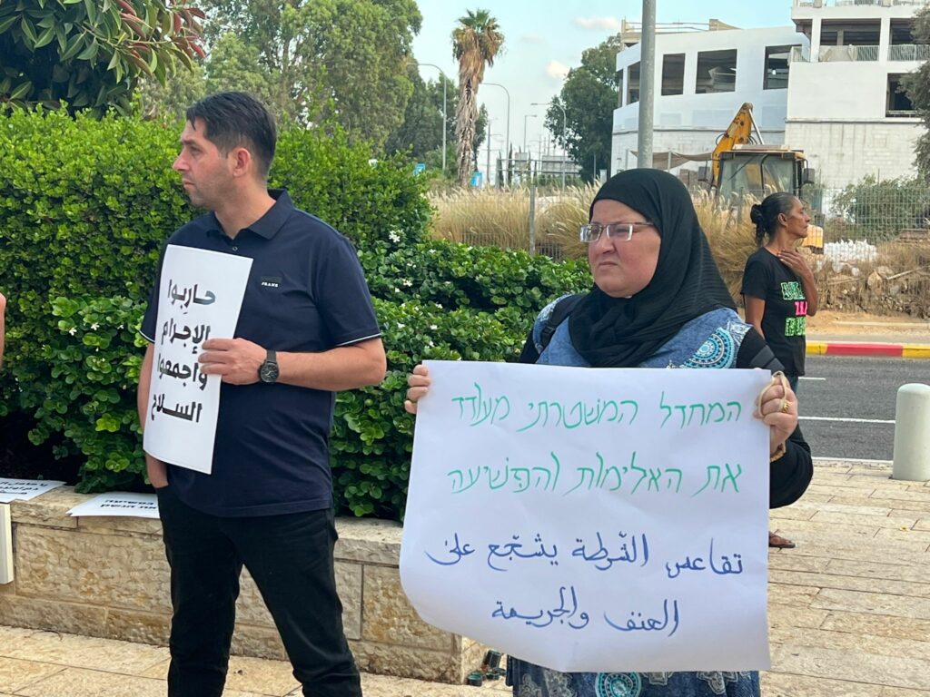وحمل المتظاهرون لافتات كتب عليها “تقاعس الشرطة يشجع الجريمة والعنف”، “حاربوا الجريمة، اجمعوا السلاح”، و “الحكومة والشرطة شريكات بالجريمة”. كما هتف المتظاهرون ضد الشرطة وتقاعسها بمحاربة ظاهرة الجريمة المنظمة.