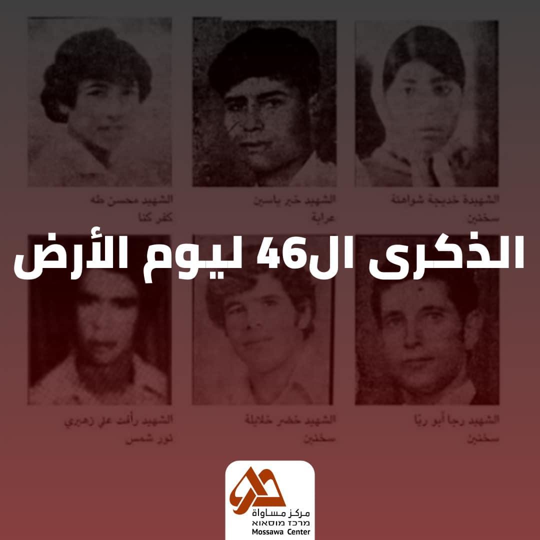 في ذكرى يوم الأرض ال46 مركز مساواة يصدر بيان يشمل فيه قضايا مركزية يعاني منها المجتمع العربي مثل بمجال الآرض